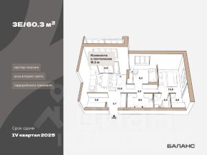 Квртира в формате хайфлэт — одна из комнат с высоким потолком 5,1 метров. Внутри мастер-спальни продуманы отдельный санузел и гардеробная. Вторая гардеробная в прихожей. Выход на лоджию с панорамным остеклением в кухне-гостиной расширит пространство.