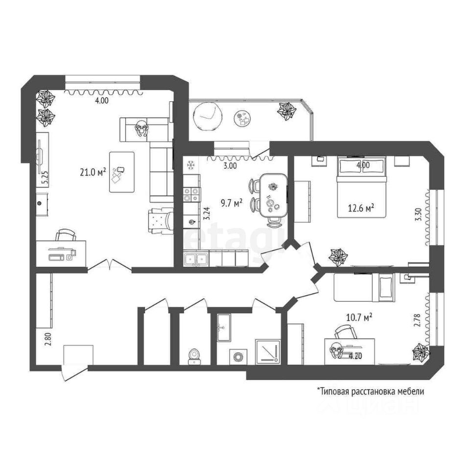 Гармоничная, комфортная планировка - все помещения, включая прихожую, сан.узел, лоджию достаточно просторные. Функциональная планировка - одно из главных достоинств квартиры - включает в себя просторную правильной формы кухню, застекленную лоджию, комфортную гостиную, большую спальню, детскую, просторный холл, сан.узел.