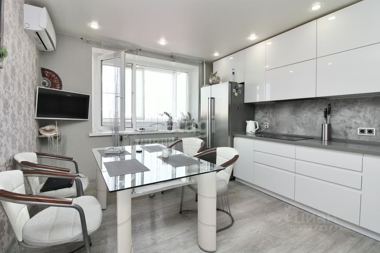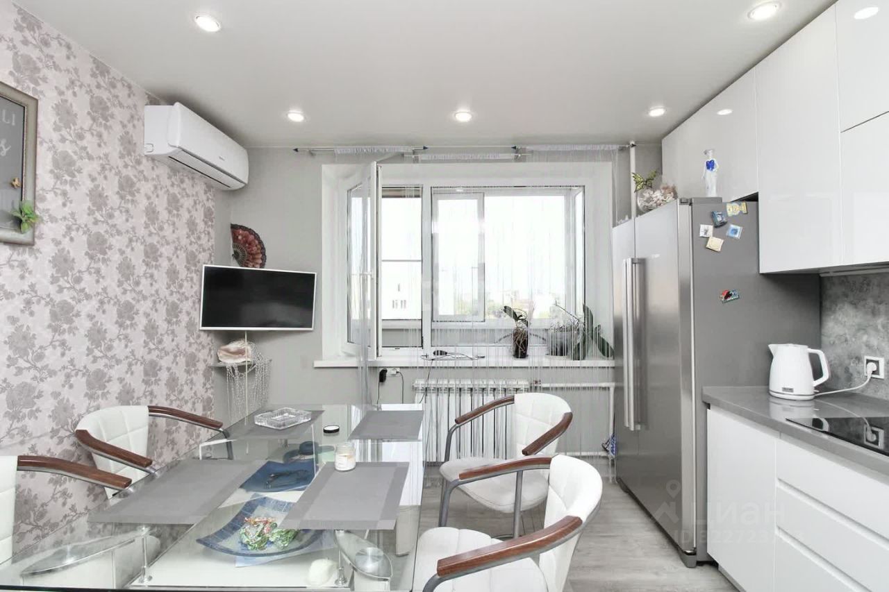 Продается 4х комнатная квартира. Современный ремонт. Чистый подъезд, в 22 году произведен капитальный ремонт крыши и тех. этажа. Двор огорожен, есть небольшая стоянка для автотранспорта, детская и спортивная площадка во дворе. В 50 метрах большая, бесплатная парковка. Центр города, развитая инфраструктура, детские сады, школы, парки, магазины, областная больница, Мед институт, музыкальная школа, библиотека, Тюменский Индустриальный университет в шаговой доступности. Квартира 104,7 кв.м, расположена на 9 этаже, 9-и этажного дома 121т серии. 1997 года постройки. Высота потолков 2,5 м., с/у раздельный, 2 лоджии остеклены, декоративная штукатурка. Окна - пластик, пол-кварцвенил, ламинат, стены-обои, кафель в с/у, Кухня -13,5 кв.м, 3 комнаты по 20 кв.м., 1 комната-гардеробная 13 м.кв. Окна выходят на восток и на запад. Домофон, лифт, есть кладовка на этаже. УК "Альтернатива". 1 собственник.
