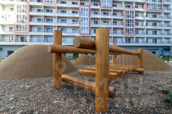 Квартал состоит из 4-х домов высотой от 10 до 20 этажей и современным двором закрытого типа. На первых этажах зданий расположатся магазины шаговой доступности. Открытая наземная парковка на 1379 м/м обеспечивает место для размещения автомобиля.