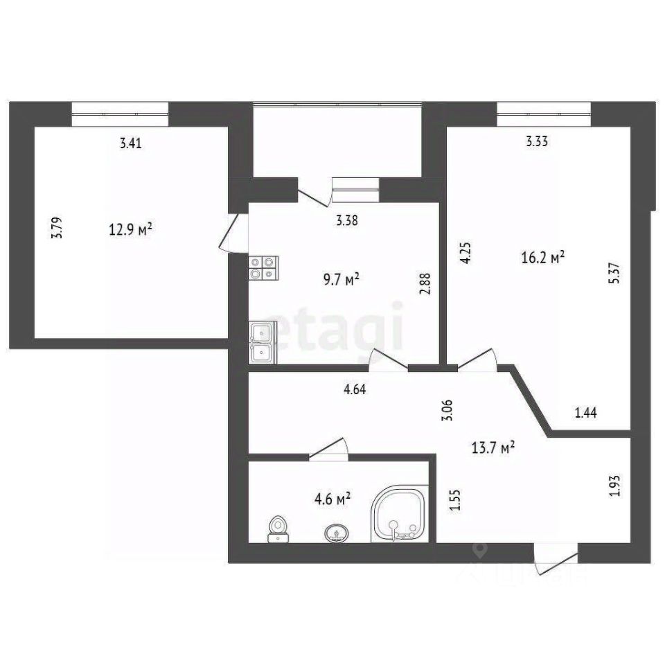 Квартира площадью 57,1 м² расположена в кирпичном доме, что обеспечивает высокий уровень шумоизоляции и теплоэффективности. Просторная кухня 10 м² позволяет комфортно разместить обеденную зону и современную технику. Изолированные комнаты дают возможность гибкого использования пространства — для семьи, работы или гостей. Высота потолков 2,7 м создает ощущение простора, а совмещенный санузел с импортной сантехникой и отделкой плиткой отвечает современным стандартам.