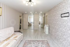 Квартира готова к проживанию: выполнен косметический ремонт. На полу — ламинат, стены - обои, натяжной потолок, окна заменены на пластиковые. в одной комнате. Просторный совмещенный санузел в кафеле, установлены ванна и унитаз раковина.
