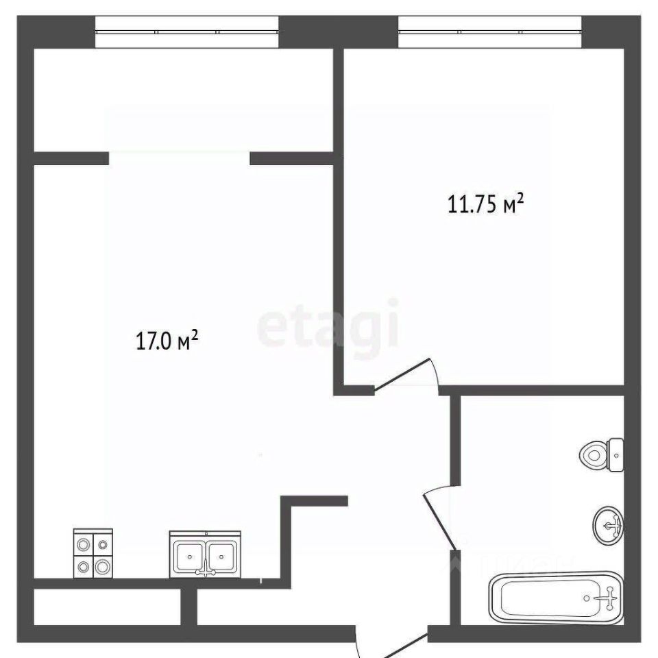 Продуманная планировка: просторная кухня-гостиная площадью 14 кв.м служит центром притяжения, а изолированная спальня 12 кв.м гарантирует приватность и отдых.