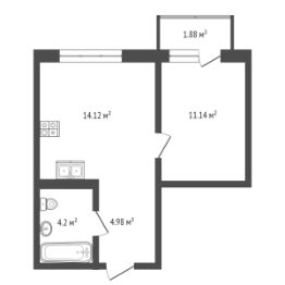Общая площадь квартиры без учёта балкона составляет 34,4 кв.м. В квартире выполнена улучшенная черновая отделка: установлена электропроводка, стены окрашены в светлые тона, выполнена стяжка пола с горизонтальной разводкой и звукоизоляцией.