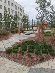 Этот малоэтажный квартал расположен рядом с лесопарком и озёрами, что создает атмосферу гармонии и уюта. Закрытые озеленённые дворы с видеонаблюдением оборудованы детскими площадками и зонами для отдыха. Просторные подъезды с колясочными и вход без ступеней обеспечивают комфортное проживание.