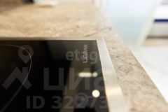 Пространство зонировано на кухонную и спальную зоны раздвижной перегородкой из матового ударо-стойкого стекла — удобно и функционально.