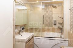 В квартире выполнена отделка в современном стиле: натяжные потолки с точечными светильниками по всей квартире, сенсорные выключатели за исключением кухни и детской, плитка в раздельном санузле, установлена качественная сантехника, на полу линолеум, в зале spc плитка, на стенах обои, балконы остеклены, один балкон с отделкой и теплыми полами, есть кондиционер.