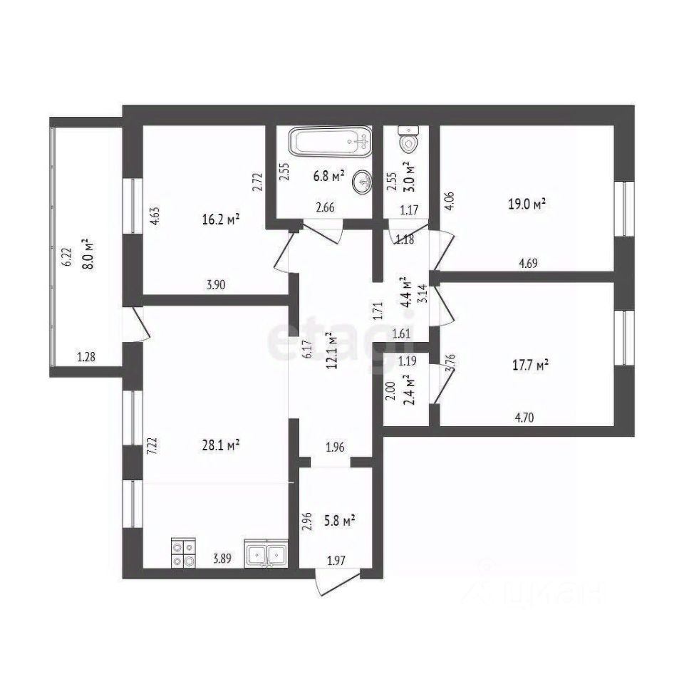 ОБЪЕКТ: трёхкомнатная квартира площадью 115,5 кв. м.