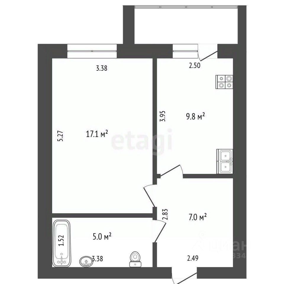 Комната 17.8 кв.м, Кухня 10 кв.м, со встроенным кухонным гарнитуром.