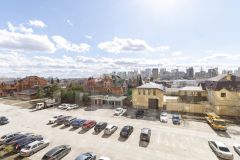 Высота потолков 2,7м. Большой коридор с очень вместительным шкафом купе . Просторный совмещенный санузел 5.1 кв.м в кафеле. Пол в комнате, коридоре, кухне линолеум, везде натяжные потолки. Остается шкаф- купе, кухонный гарнитур.