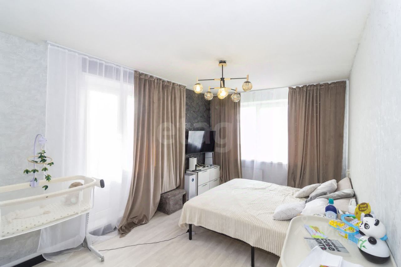 Квартира расположена на четвертом этаже в активно развивающемся и хорошо обеспеченном инфраструктурой районе города. Отличается выгодным местоположением: дорога до центра на автомобиле занимает порядка 10 минут, а пешая доступность до торгового центра "Кристалл" не превышает 10 минут. В непосредственной близости находятся городская поликлиника 5, два детских сада и гимназия 83 с углубленным изучением иностранных языков.
