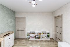 Просторная квартира с современным, функциональным ремонтом, выполненным в пастельных тонах. Большая, уютная кухня-гостиная с выходом на лоджию, две спальни, кабинет, просторная прихожая с оборудованными местами- хранения.