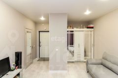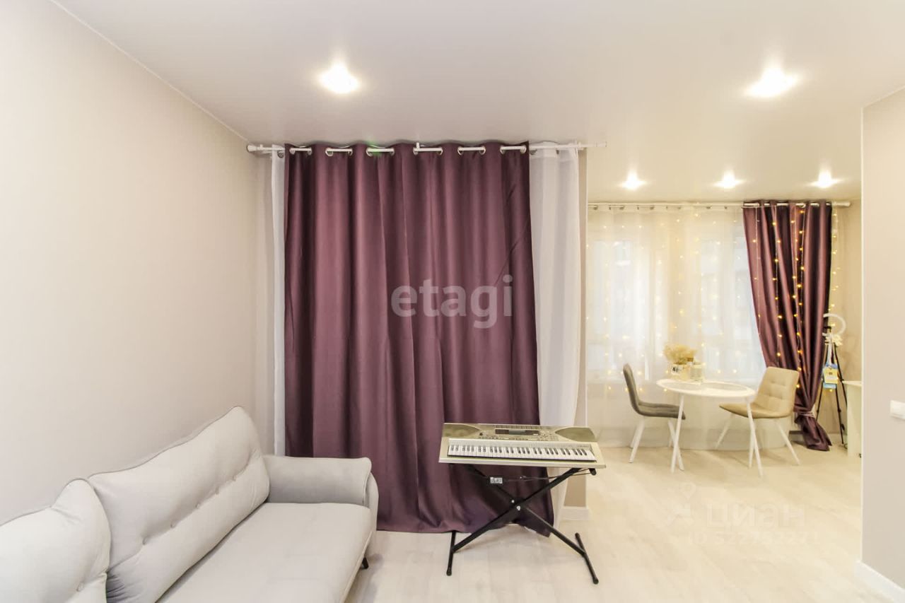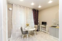 Шикарная для студии планировка- в квартире выделена отдельно зона кухни, отдельно гостиная зона, большой санузел.