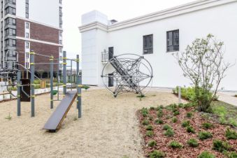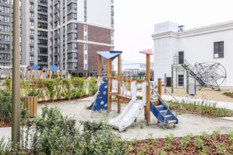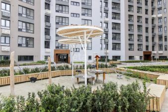 Закрытый двор со всей необходимой инфраструктурой. На площадке всего 6 квартир с зонированием по 3 квартиры.