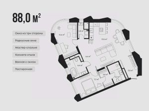Планировка предусматривает мастер-спальню со сквозной гардеробной, детскую, просторную кухню-гостиную, ванную с окном и постирочную.