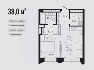 Планировка предусматривает мастер-спальню со сквозной гардеробной, кухню-гостиную с угловым гарнитуром и дополнительный санузел.
