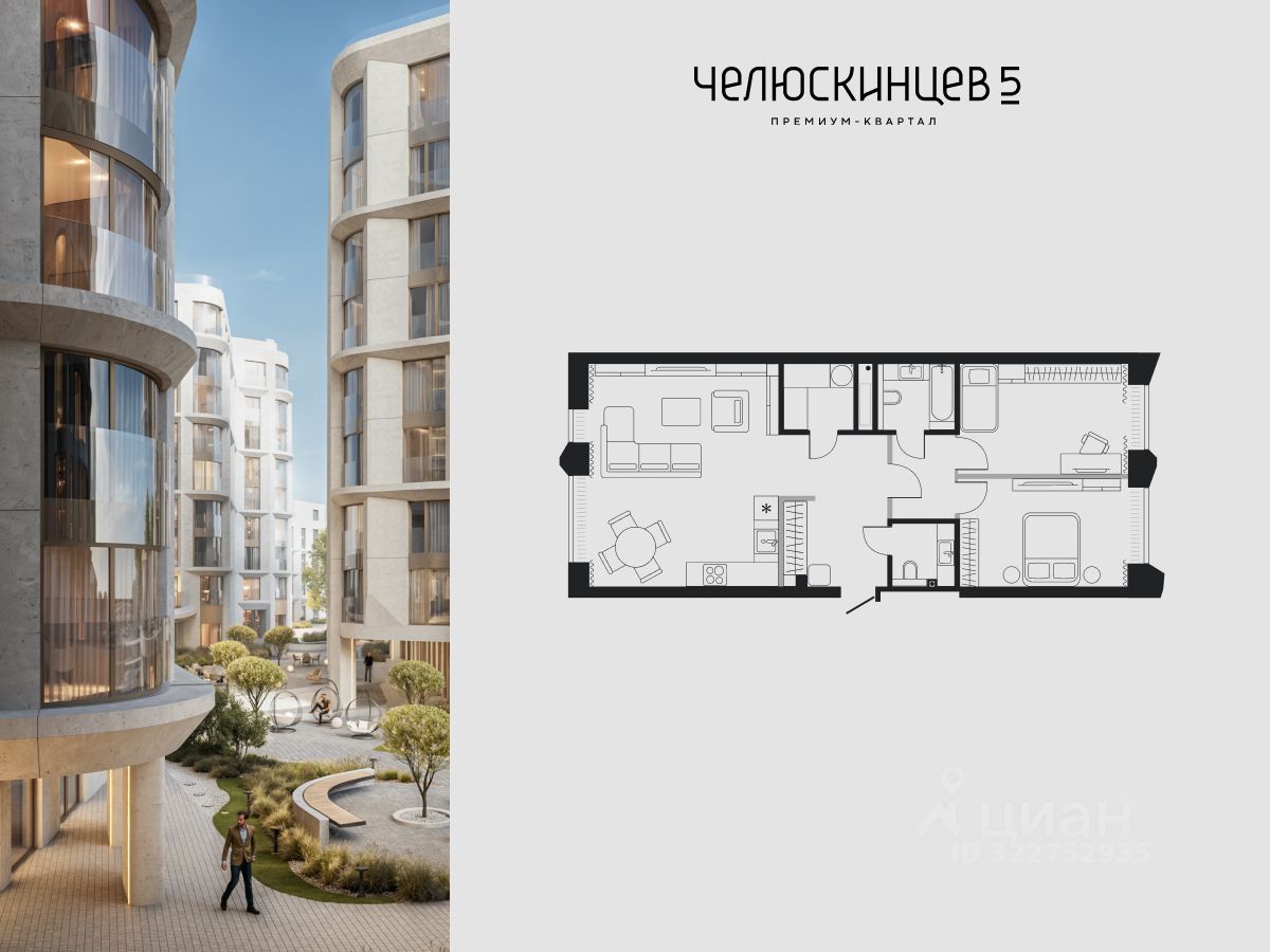 Экспозиционная планировка строго разделяет личное и общее пространство в квартире. Она предусматривает две спальни с выходом на балкон, просторную кухню-гостиную, дополнительный санузел и постирочную.
