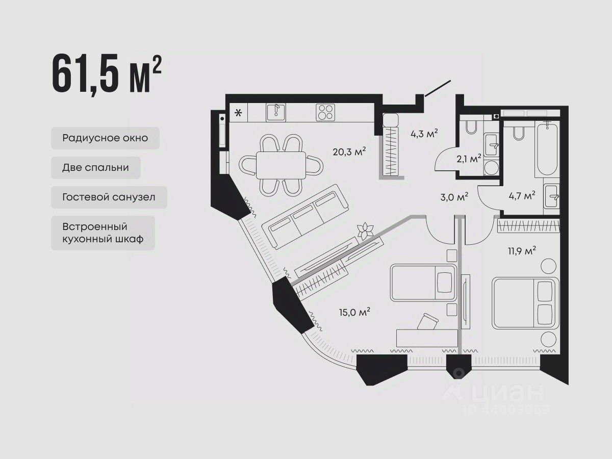 Квартира в квартале премиум-класса в культурном и гастрономическом центре города. Рядом расположены театры, концертные залы и рестораны из топа региональных гастропремий. Планировка предусматривает две спальни с увеличенными окнами, просторную кухню-гостиную и дополнительный санузел. Высота окон — 2,4 метра, поэтому в комнаты проникает много естественного света. В одной из спален спроектировано радиусное окно для бесшовного обзора на две стороны. Профили выполнены из золотистого алюминия. Витражи с тройным остеклением и двухкамерным стеклопакетом. Они не пропускают холод и жар — это сохраняет комфортный микроклимат в квартире. Внутри пола встроены бесшумные конвекторы. Они создают естественную циркуляцию теплого воздуха и не загораживают вид из окна. Узнать детали проекта и договориться о персональной презентации можно по номеру, указанному в объявлении.