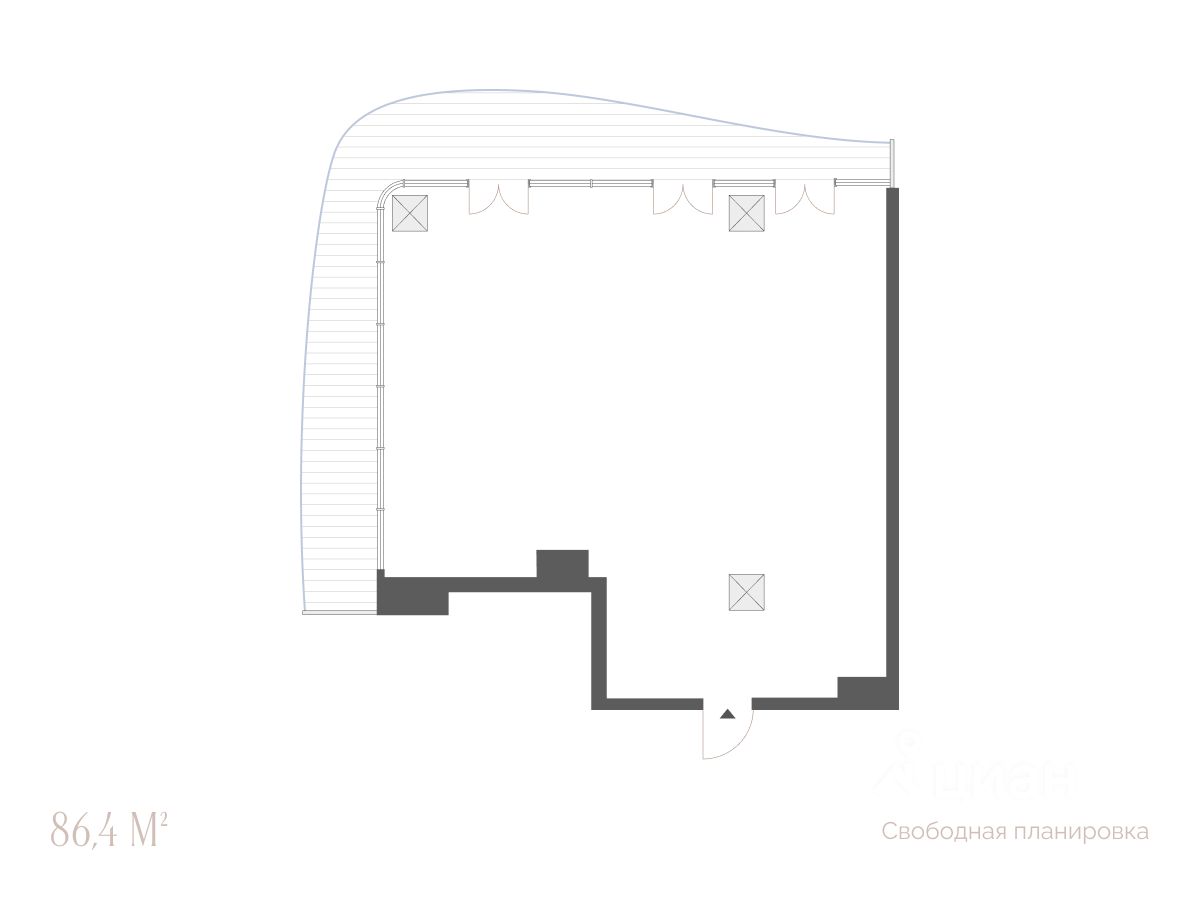 Планировка свободная — без межкомнатных стен, чтобы адаптировать апартаменты под любой жизненный сценарий.