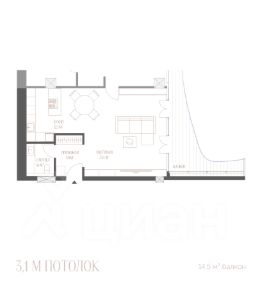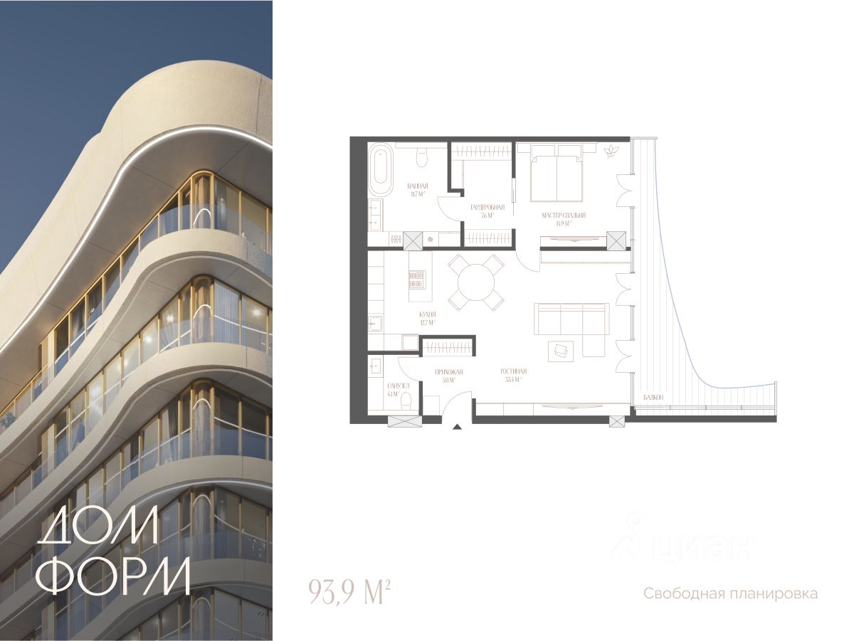 Площадь подходит для организации мастер-спальни со сквозной гардеробной, просторной гостиной и дополнительного гостевого санузла.