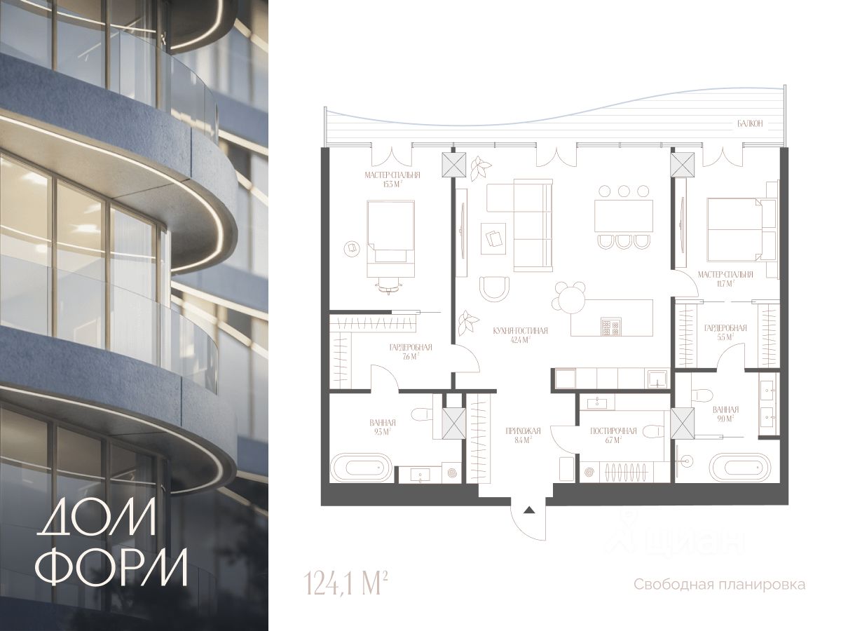Планировка свободная — без межкомнатных стен, чтобы адаптировать апартаменты под любой жизненный сценарий.