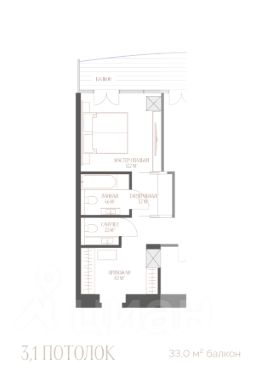 Окна выходят на непрерывный балкон площадью до 33,4 м². Выходов на балкон четыре.