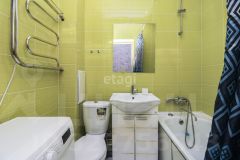 В квартире натяжные потолки с дополнительным освещением. На стенах обои. На полу качественный ламинат. Санузл совмещен. Весь в плитке.