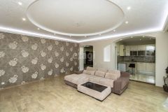 Гостиная — большая, светлая, объединена с кухней. Здесь собирается семья, звучит смех, пахнет свежей выпечкой.
