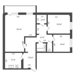 Благодаря большой площади гостиной, вы можете создать полноценную 4-комнатную квартиру! Включает кухню-гостиную площадью 30,3 кв.м. с выходом на просторную лоджию, 3 изолированные комнаты, два санузла и кладовку.