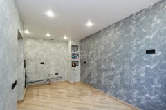Совмещенный санузел отделан широкоформатной плиткой, что облегчает уход и создает ощущение простора. В квартире выполнен качественный современный ремонт: полы покрыты износостойким кварцвинилом, стены оформлены в нейтральных тонах, что позволяет легко адаптировать интерьер под любой стиль.