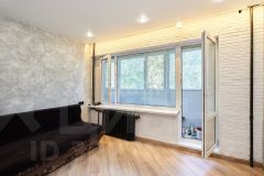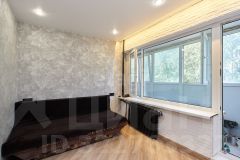Большая застекленная лоджия с выходом из обеих комнат увеличивает полезное пространство и может использоваться как зона отдыха или хранения.