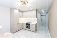 Благодаря дизайн решению, организовано пространство в кухне - гостиной 14 кв.м , с возможностью установить тв и диван.