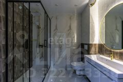 В квартире предусмотрены выводы: под кондиционер, стиральную машину, посудомоечную машину. Санузел выполнен в светлых тонах -керамогранит.