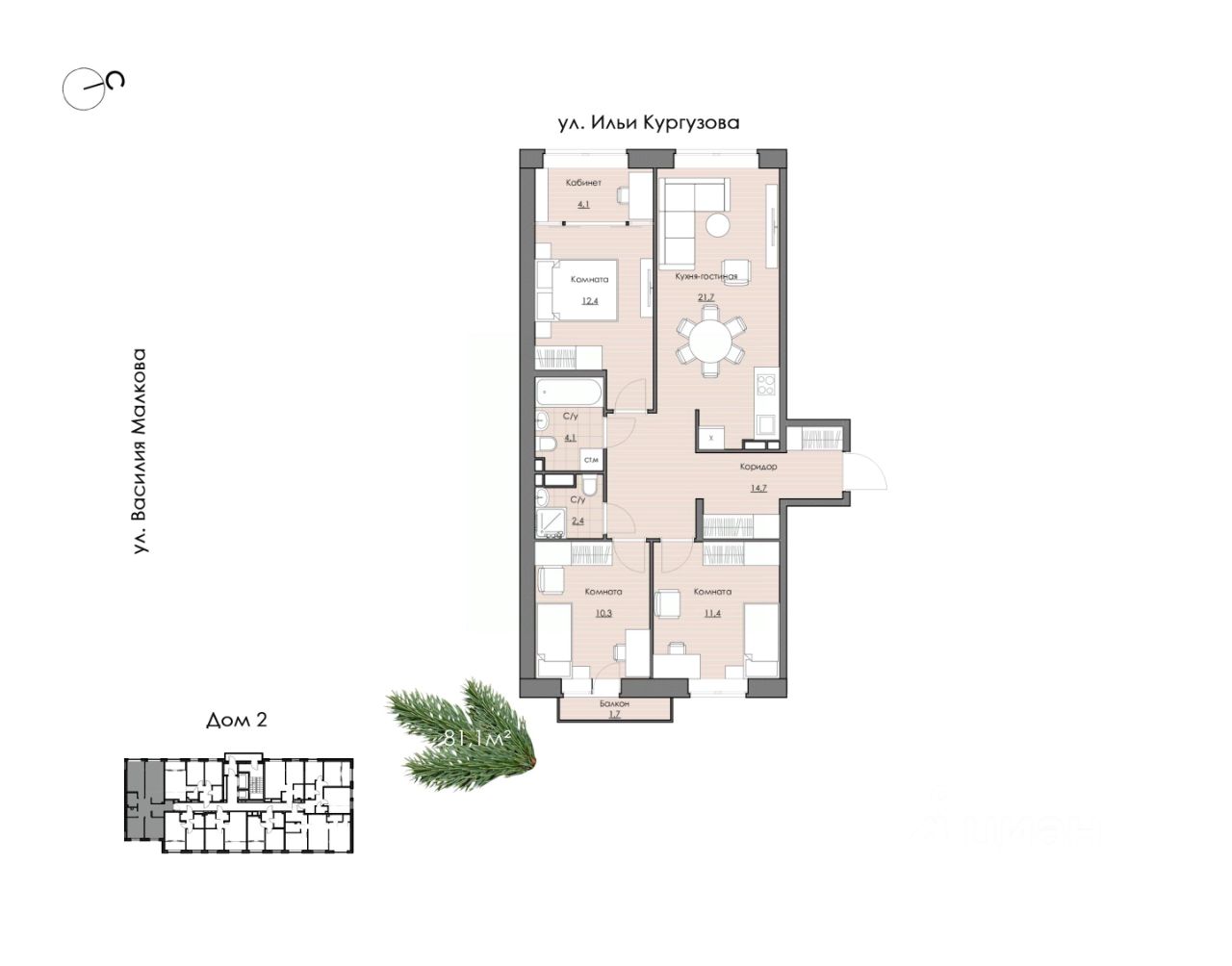 Квартира 3+ с окнами на 2 стороны Самая популярная по спросу квартира это квартира с окнами на 2 стороны света! Здесь идеально все! • Просторная кухня-гостиная с широким окном • Спальня с выделенной зоной, которую вы можете использовать как кабинет или зону отдыха • 2 детские с видом на двор и променад • Французский балкон • Два удобных санузла, где вместится все необходимое • Вместительный двойной холл с двумя нишами под шкафы-купе