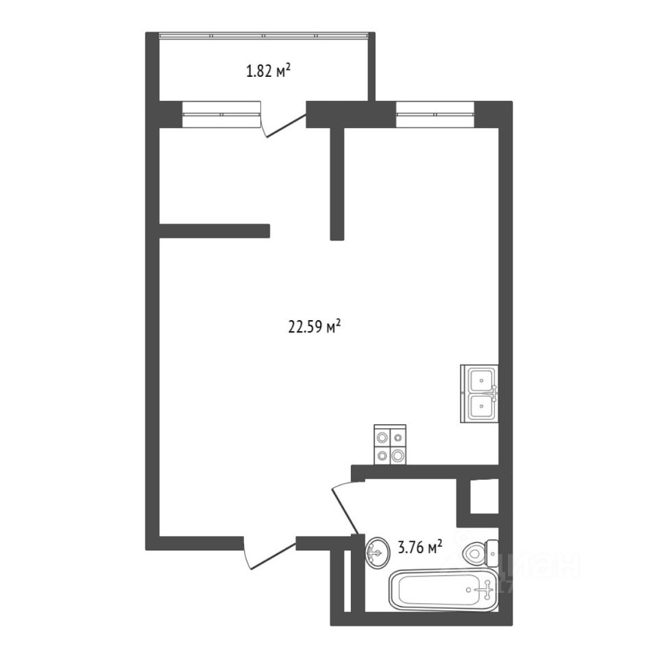 Продаётся студия 27 кв.м. в Ново-Комарова