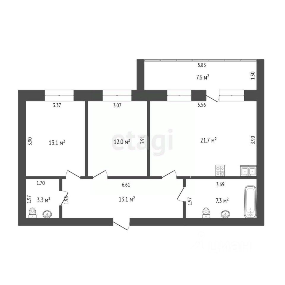Квартира 2+ (евро-трёшка) с невероятно удобной планировкой. Главное место в квартире - просторная кухня-гостиная более 21 кв.м. Две спальни 12 и 13 кв.м правильной формы. Основной совмещённый санузел более 7 кв.м. и второй дополнительный санузел площадью 3,3 кв.м, который можно оборудовать под второй совмещённый санузел, под постирочную, под гардеробную или сделать перепланировку и присоединить эту площадь к спальне.