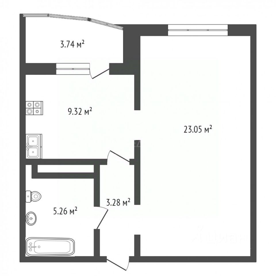 - Однокомнатная квартира, площадь 41,1 м², потолки 2,7 м.