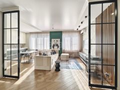Высокие потолки - 3 метра и увеличенного нестандартного формата окна добавляют ощущение воздуха и простора.