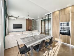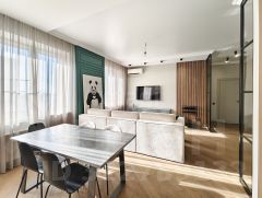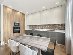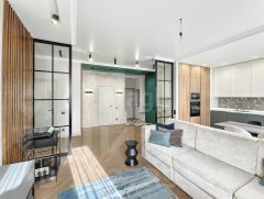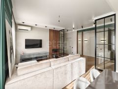 Квартира представлена в состоянии свежего ремонта, выполненного по выразительному стильному дизайн-проекту. Собственник квартиры - успешный дизайнер и, конечно, для своей семьи выбрала всё самое лучшее - материалы, фактуры, стилистические приемы, цветовые решения - всё, что будет долгие годы радовать, не утрачивая актуальности и не теряя внешней эстетики. Нет смысла перечислять бренды и страны производства керамогранита, сантехники, сан.фаянса, дверей и пр. На себе не экономили - всё только лучшее, качественное, износостойкое.