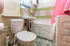 Санузел совмещен и отделан с использованием высококачественных материалов: часть стен покрашена, а часть облицована плиткой, что делает его не только эстетичным, но и практичным. Здесь вы сможете расслабиться после долгого дня и насладиться комфортом.