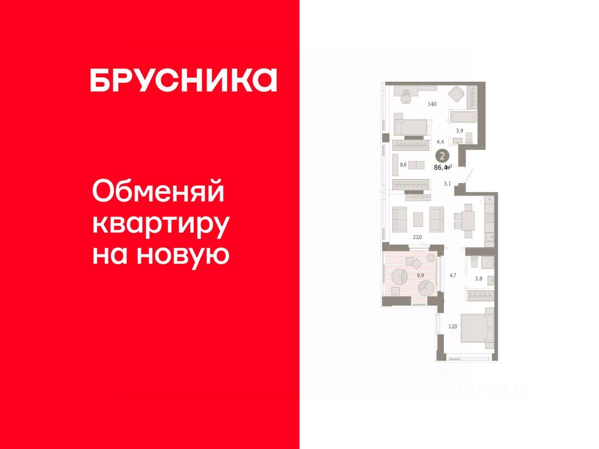 Продается двухкомнатная квартира с предчистовой отделкой в ЖК "Зарека" на 24 этаже. Общая площадь: 86.33 кв.м. Высота потолков 2.7 м.
