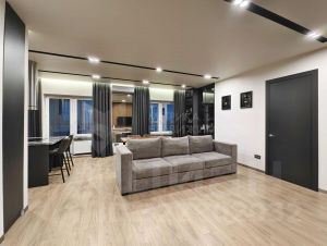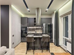 - Просторная , зонированная кухня- гостиная 32 кв с потрясающим видом на город! Преимущество -Остров, столешница из КАМНЯ.
