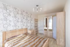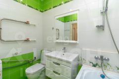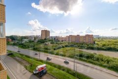В квартире выполнен современный ремонт в приятных светлых тонах, на полу ламинат, санузел совмещенный-отделан плиткой, везде натяжные потолки с точечным освещением. При продаже остается кухонный гарнитур со встроенной техникой, шкаф в спальне, остальное обсуждаемо. Квартира на удобном среднем этаже, соседей не слышно совсем, только одна квартира справа по соседству. Два больших лифта. Вид из окна просто превосходный, нет никакого эффекта "окна в окна"
