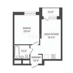 В продаже квартира формата 1+ в строящемся доме в ЖК КОСМО от застройщика Паритет.