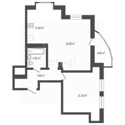 • Площадь: 71,2 кв.м + лоджия 4,8 кв.м (всего 76,0 кв.м)