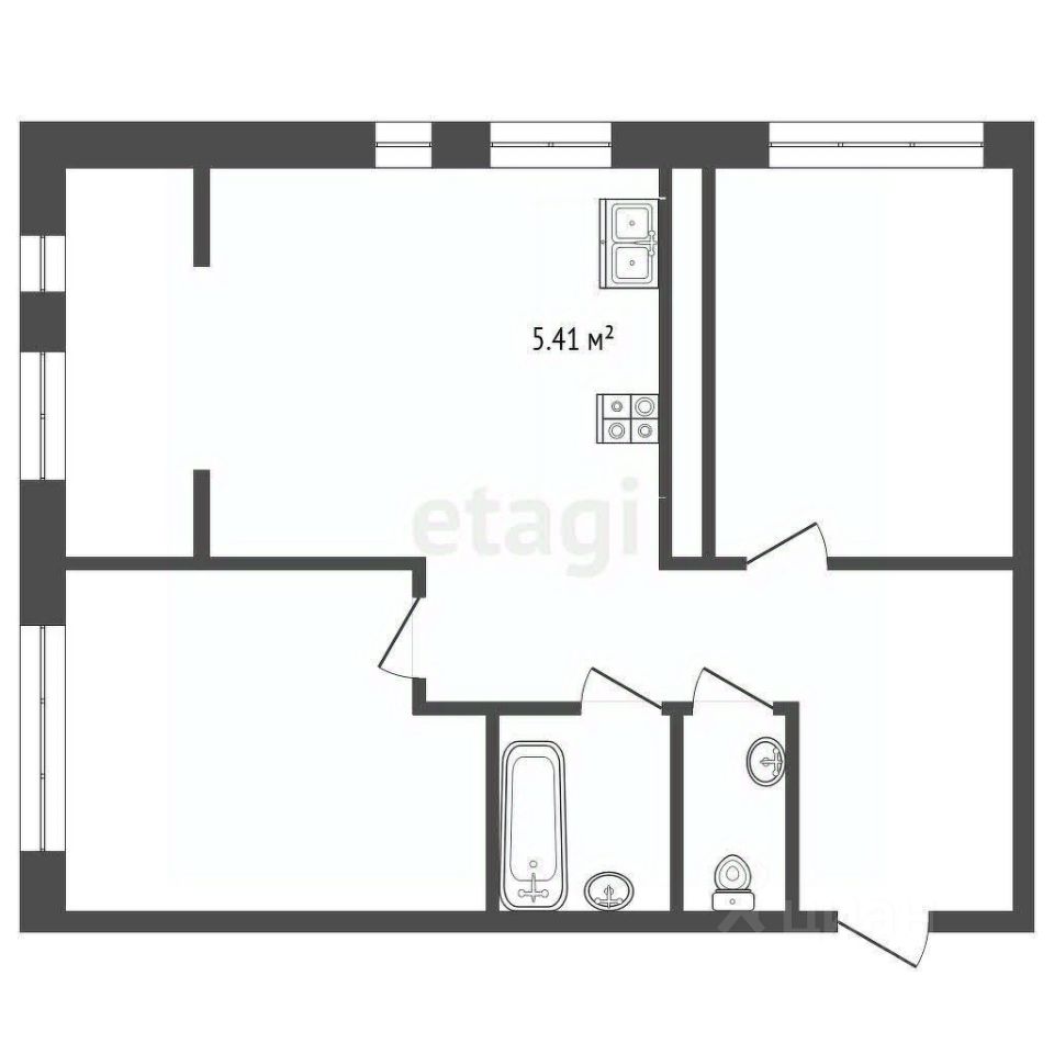 - просторная кухня-гостиная с двумя окнами на две стороны света