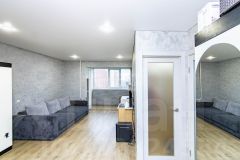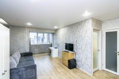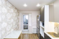 Внутри выполнен свежий, качественный ремонт, который включает в себя: полную замену электропроводки на медную, обновление всех коммуникаций и замену цементной стяжки пола. Стены оштукатурены и украшены современными обоями, а потолок оформлен натяжным. Полы покрыты высокопрочным ламинатом марки Реrgо, а в ванной, рабочей зоне кухни и прихожей уложен керамогранит, что обеспечивает долговечность и легкость в уходе.