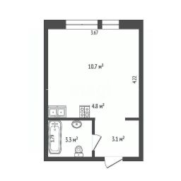 Ваша идеальная квартира уже ждет вас! Представляем современную студию площадью 21,9 м² в новом жилом комплексе "Озёрный парк", расположенную на 10 этаже 24-этажного дома по адресу: г. Тюмень, ул. Полевая, д. 117, корп. 8.