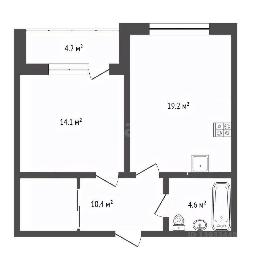 Продаётся большая квартира формата 1+, расположенная на 2 этаже 4-х этажного дома комфорт-класса в жилом комплексе "Эклипт". Очень удачная и комфортная планировка: просторная кухня-гостиная 19,2 кв.м., спальня 14,1 кв.м. с выходом на лоджию (4,2 кв.м.), функциональная прихожая 10,4 кв.м. с местом для гардеробной, совмещенный сан.узел 4,6 кв.м. Не смотря на то, что жилой комплекс малоэтажный, каждый подъезд оборудован современным грузопассажирским лифтом.