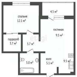 * Планировка: 1+ (изолированная спальня и просторная кухня-гостиная).